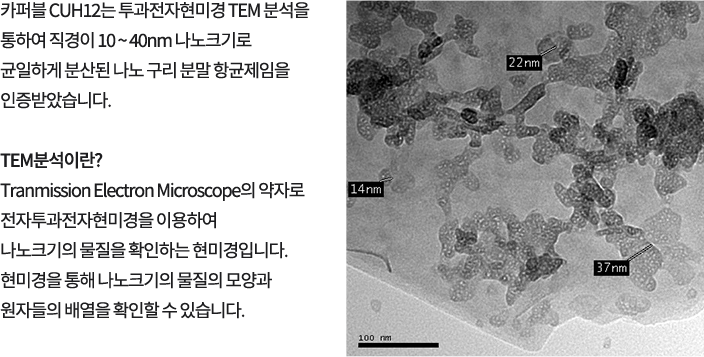나노구리 항균제 CUH12는 연한 회색의 미색분말로 내열성 및 내화학성이 우수한