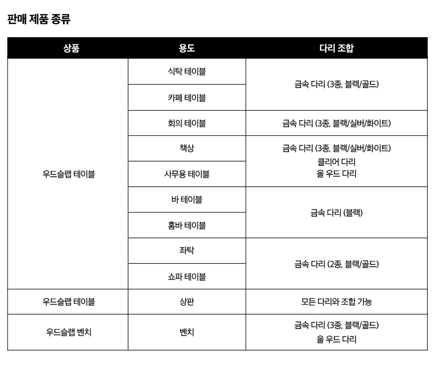 식탁, 카페 테이블 세트/단품 (의자, 다리 별도)